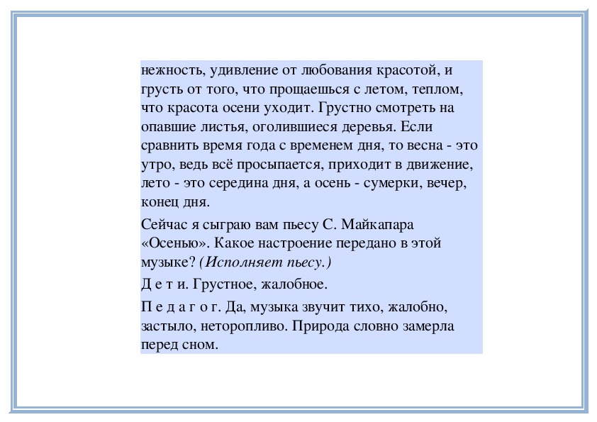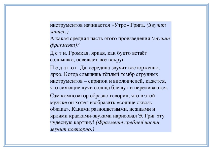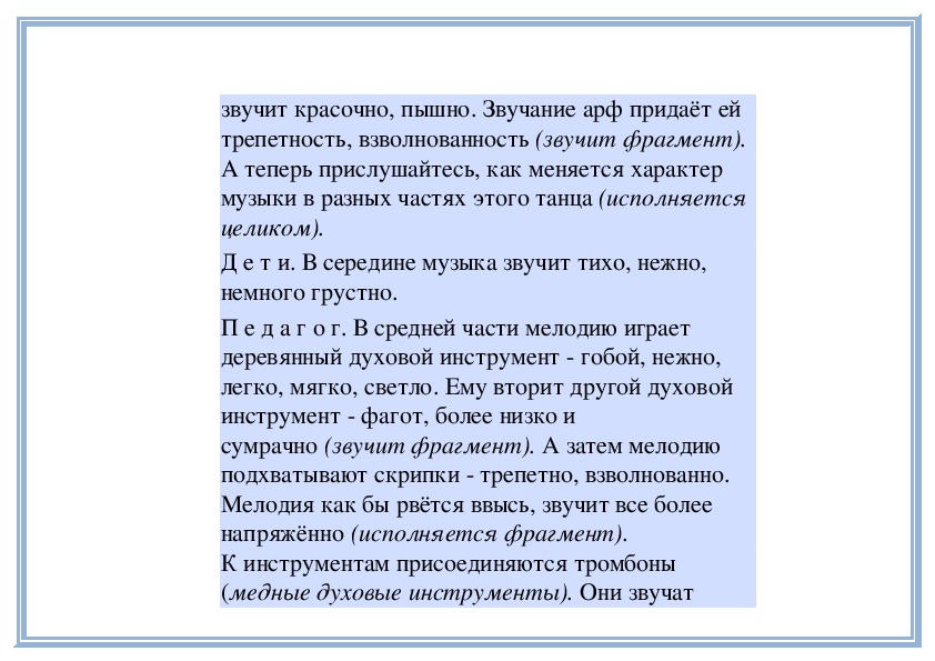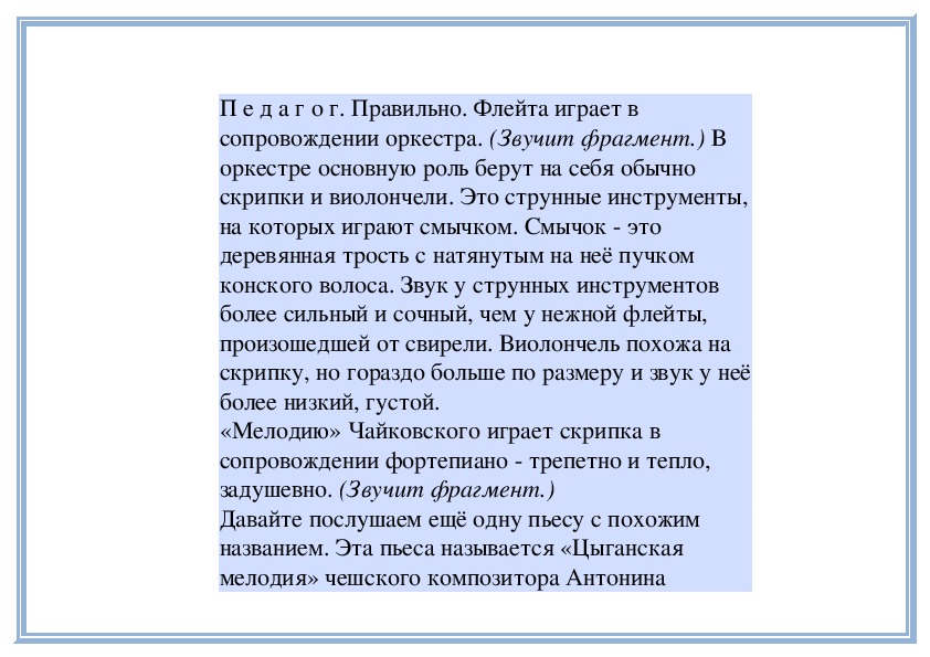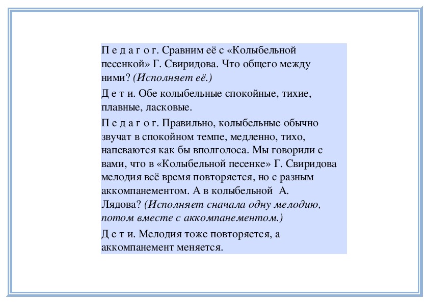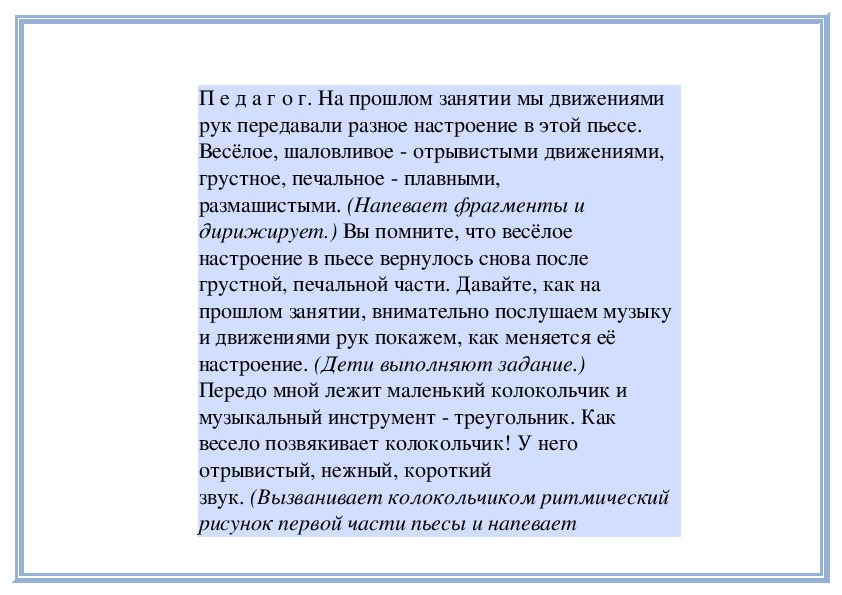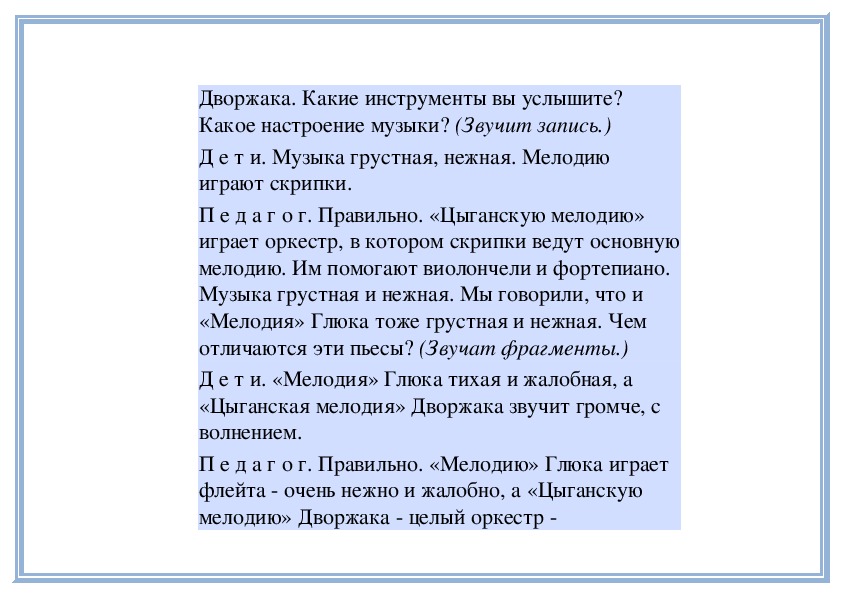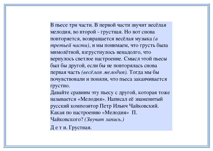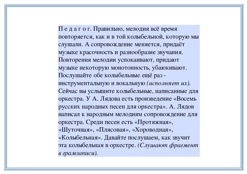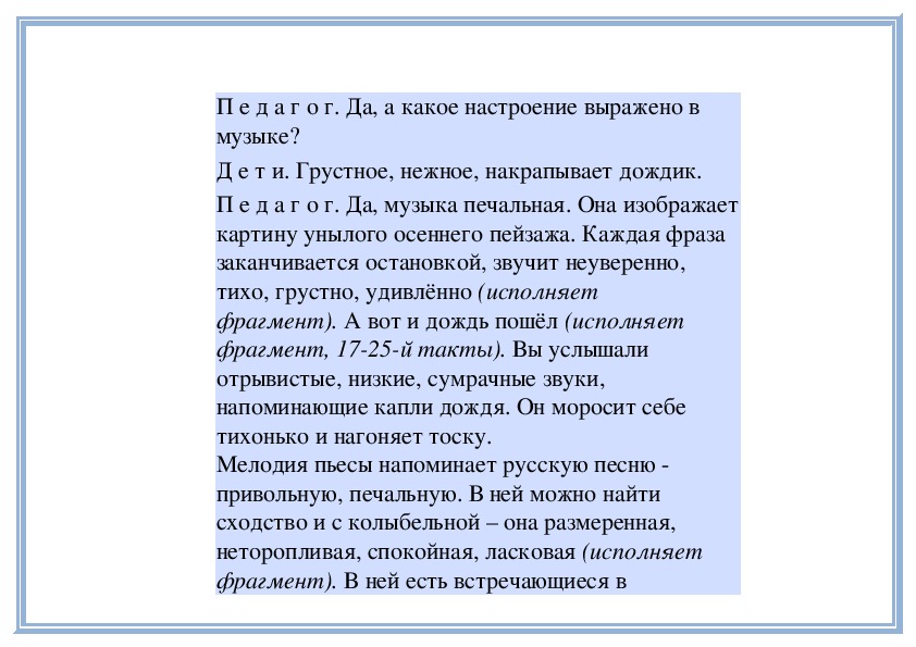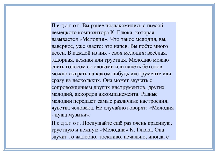 П е д а г о г. Прислушайтесь, как звучит мелодия в