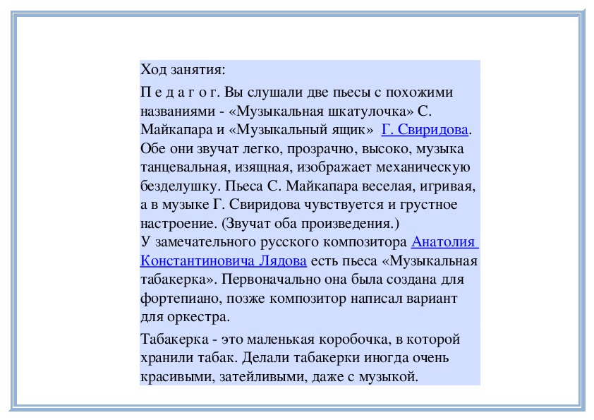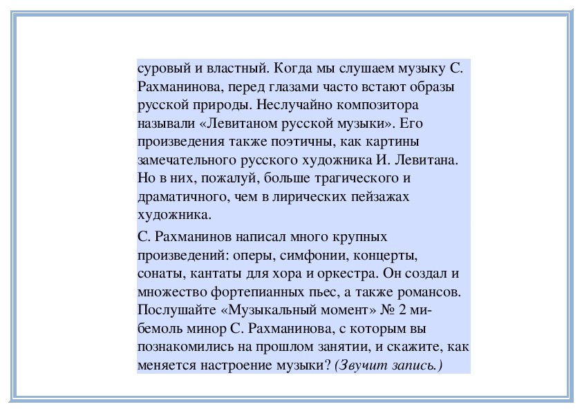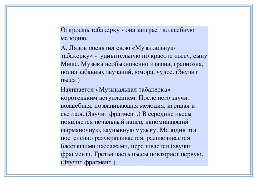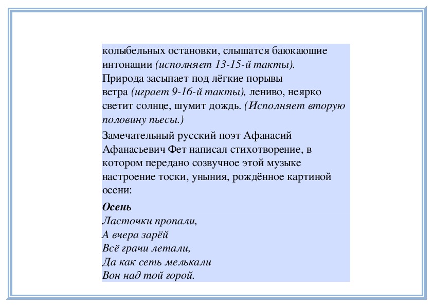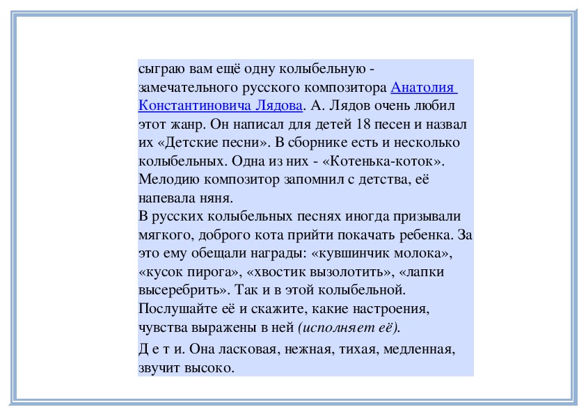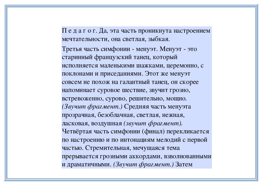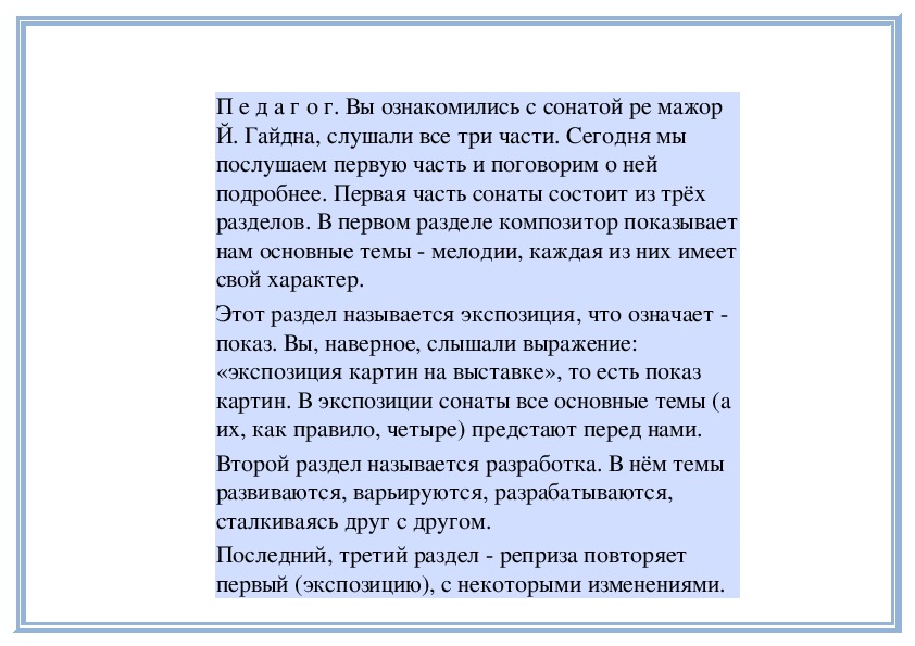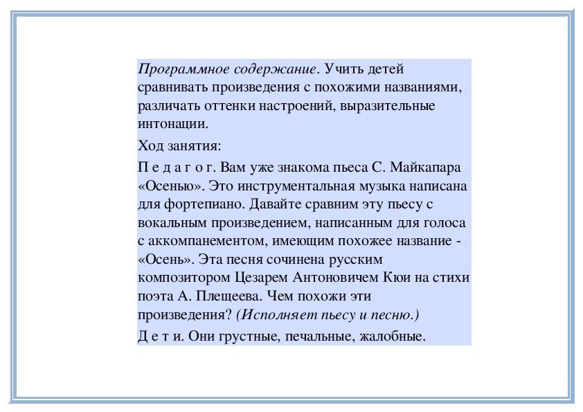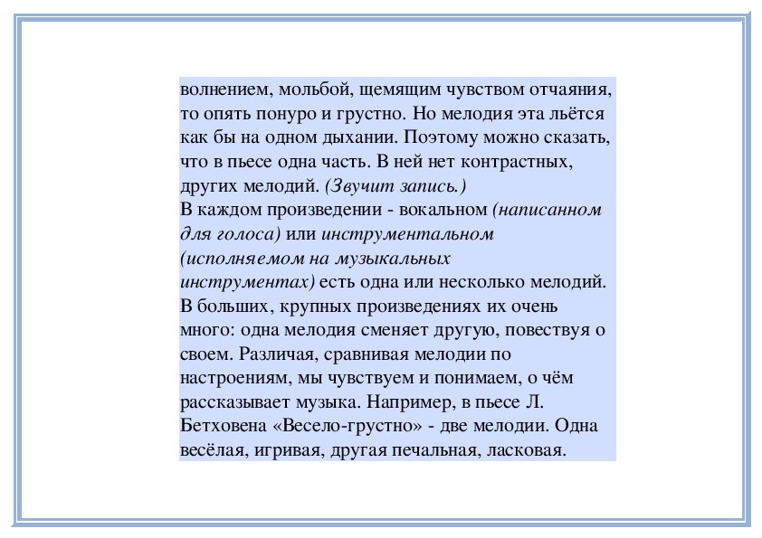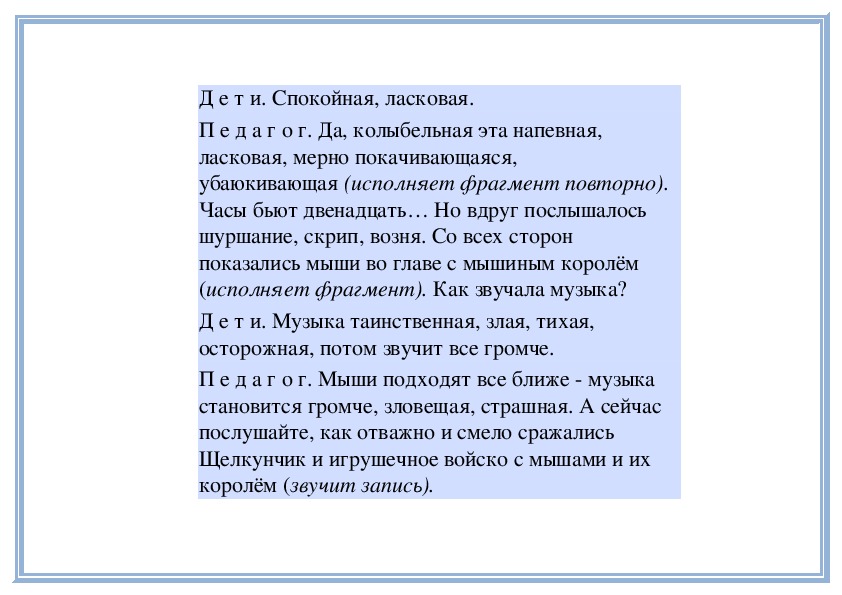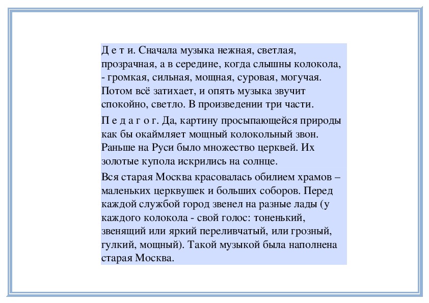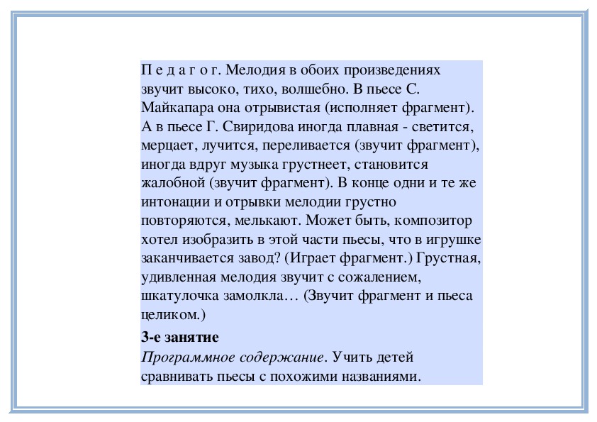 П е д а г о г. Прислушайтесь, как звучит мелодия в