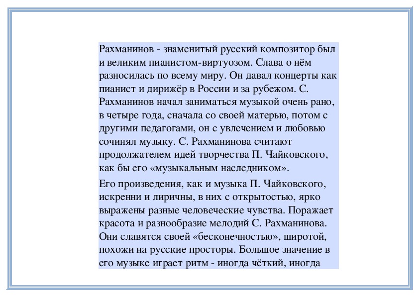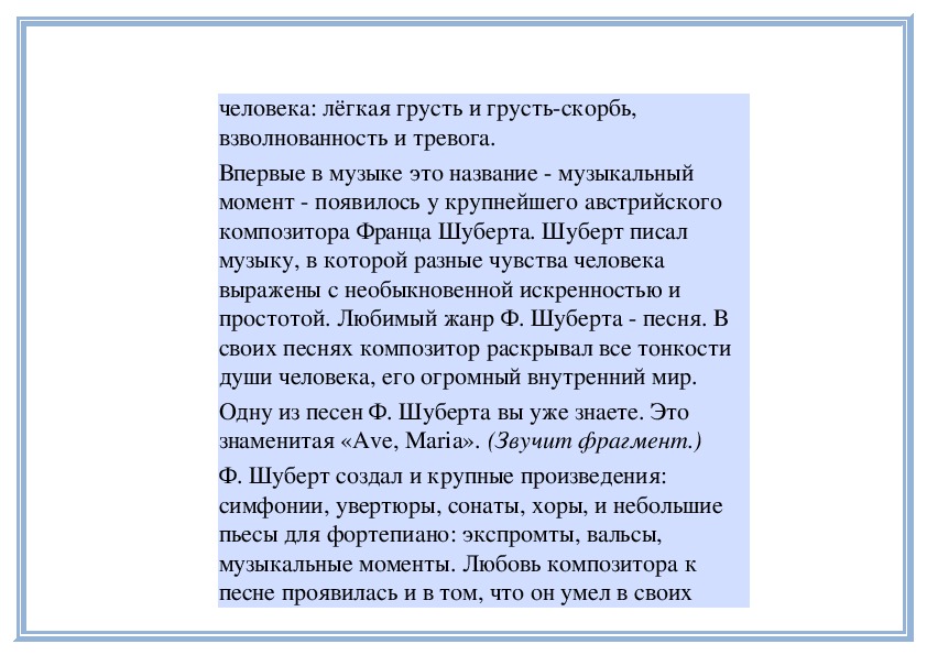 Музыка обладает волшебным свойством - она может передавать любое настроение человека, выражать разные чувства, переживания - нежность, волнение, грусть и радость.