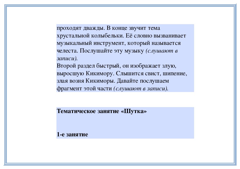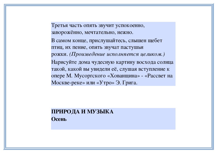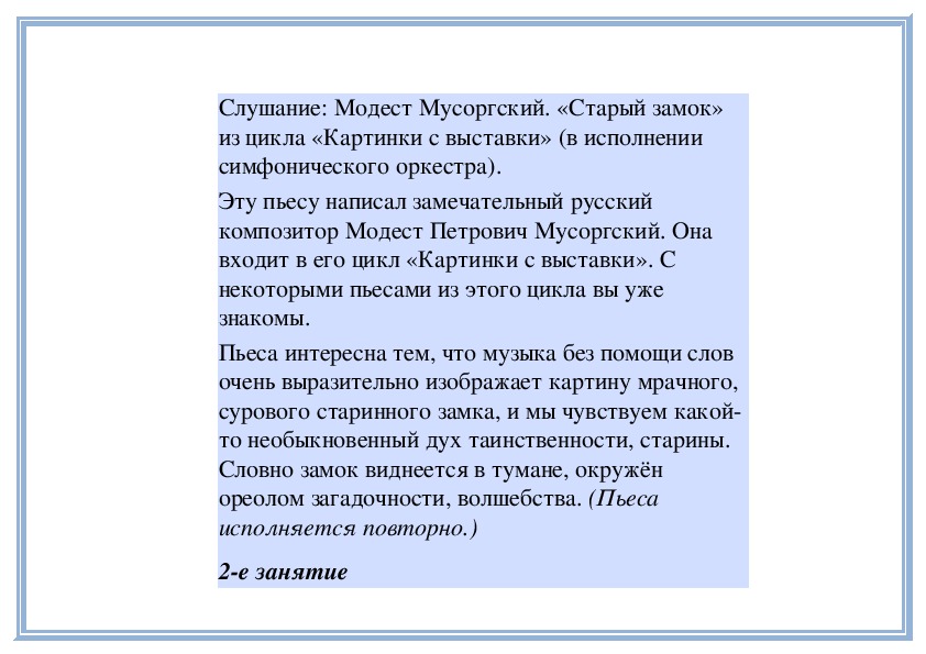 прошлом занятии, внимательно послушаем музыку