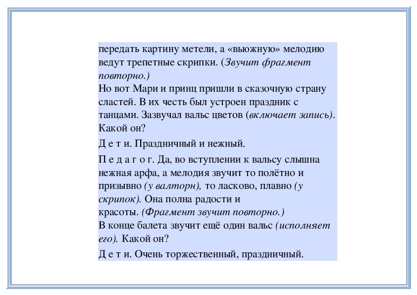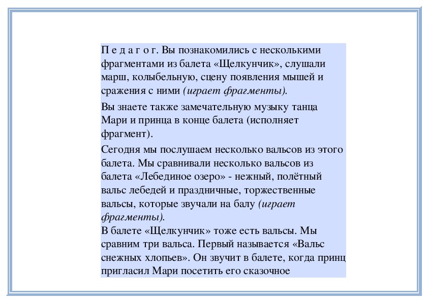П е д а г о г. Да, во вступлении к вальсу слышна