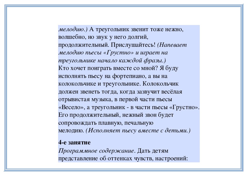 рисунок первой части пьесы и напеваетмелодию.) А треугольник звенит тоже нежно,