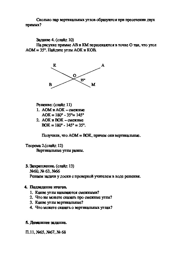o рассмотреть доказательство теорем о смежных и вертикальных