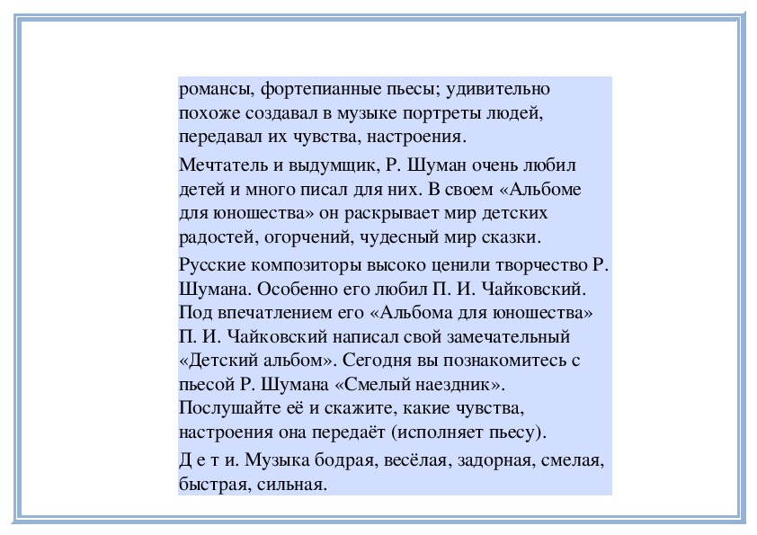 «Детского альбома». (Исполняет пьесу.)Мазурка