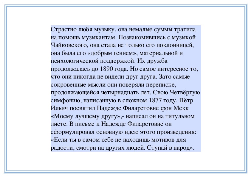 Ильич посвятил Надежде Филаретовне фон Мекк