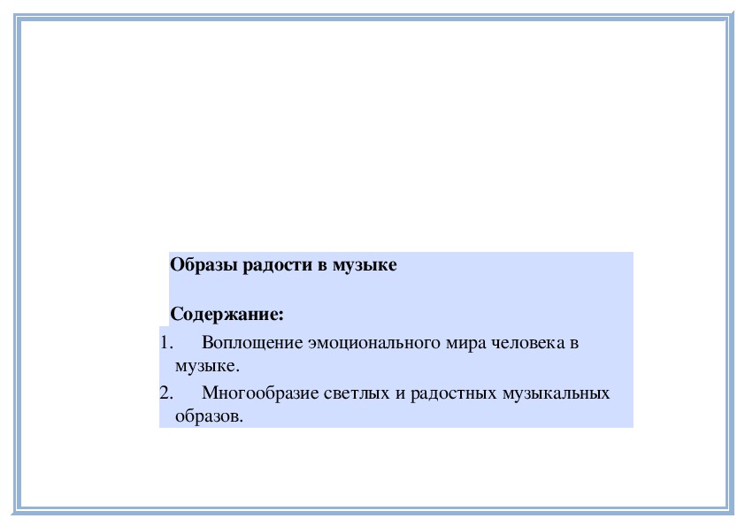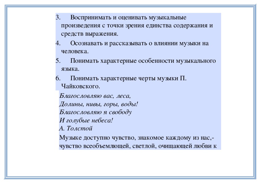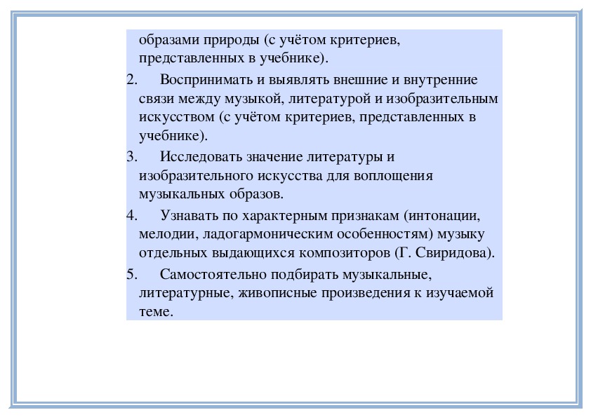 2. Воспринимать и сравнивать особенности музыкального языка в произведениях (частях произведения) разного смыслового и эмоционального содержания.