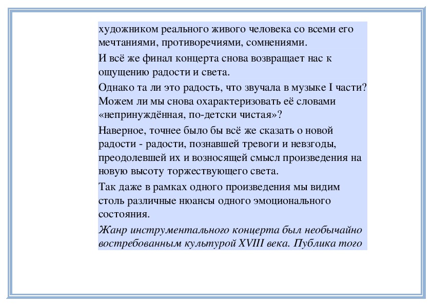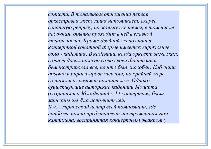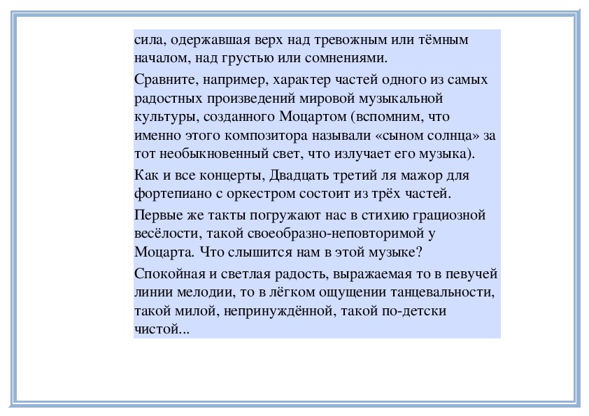2. Сравнение характеров частей в произведении крупной формы - Концерта № 23 для фортепиано с оркестром В. А. Моцарта.