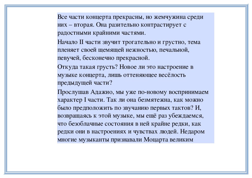 Прослушав Адажио, мы уже поновому воспринимаем