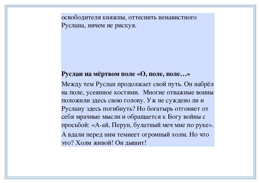 снаряжается и Руслан, и Фарлаф, и Ратмир. Фарлаф