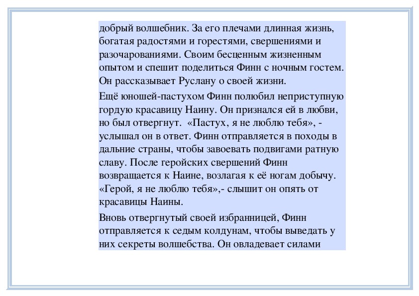отвергнуты. Людмила отдала своё сердце Руслану.Песня Баяна «Дела давно минувших дней…»