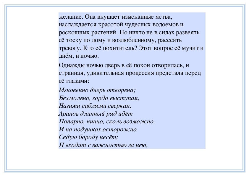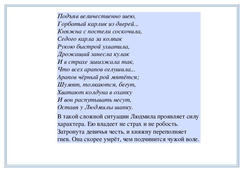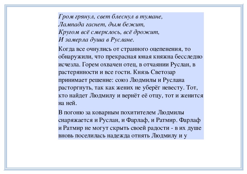 чувства, непоколебимой верностью и добротой.Сцена похищения Людмилы