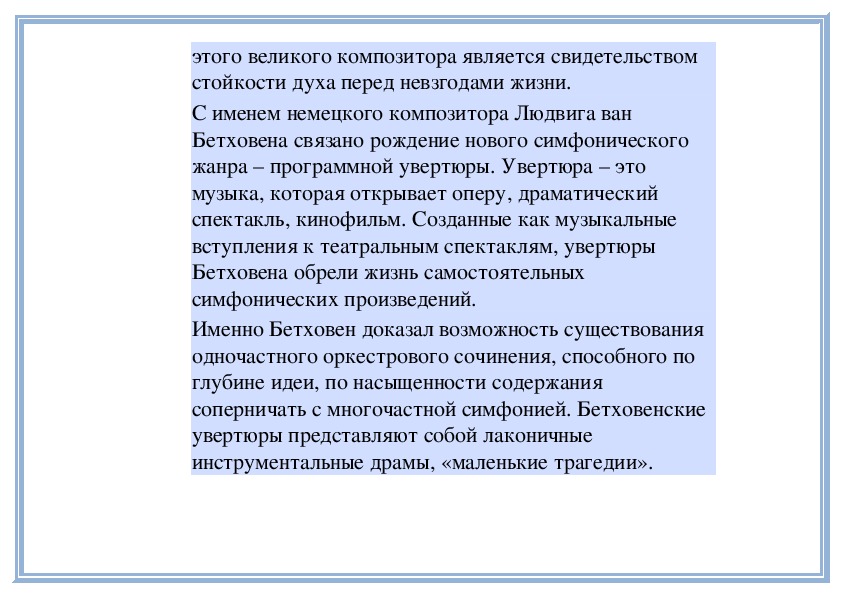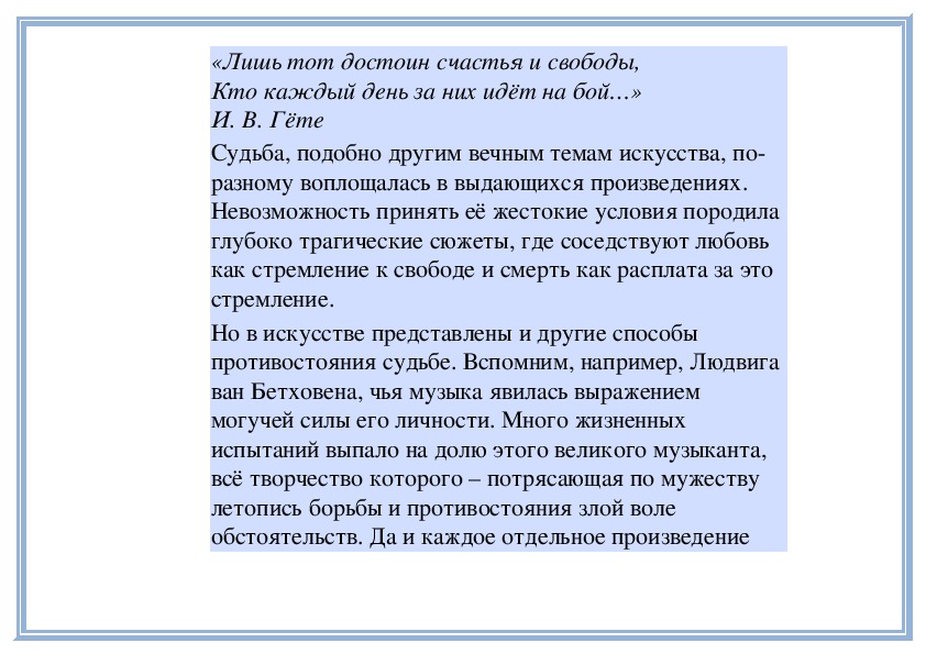 Бетховен, подобно многим и многим великимхудожникам признававший, что сила, порождающая его