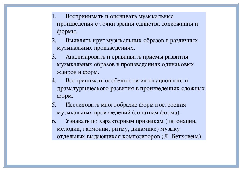 3. Оценивать музыкальные произведения с позиции красоты и правды.