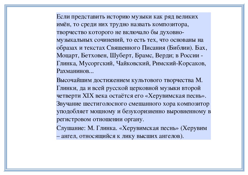 Слушание: М. Глинка. «Херувимская песнь» (Херувим