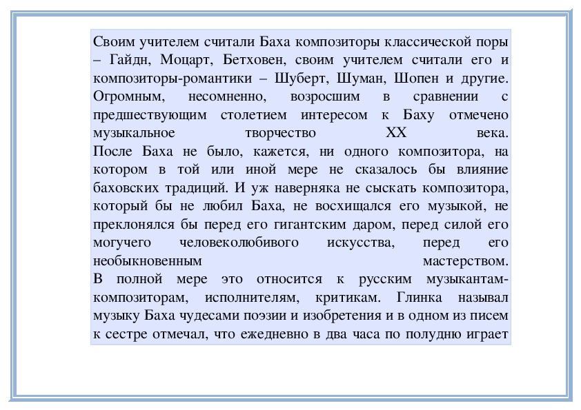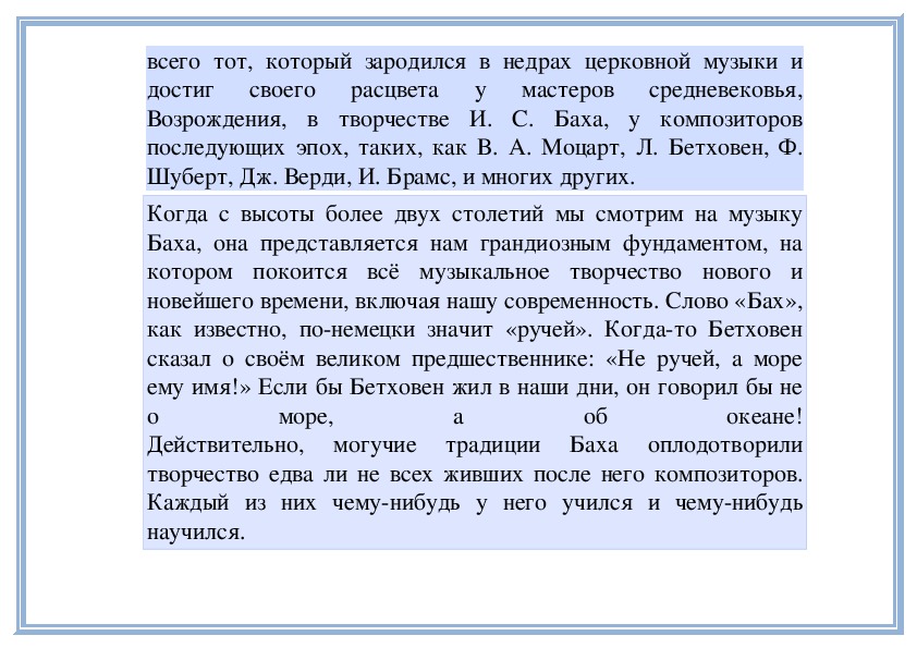 выдающихся композиторов прошлого (И. С. Баха, В. А.