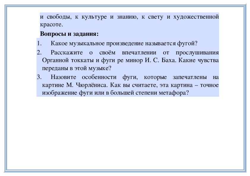 2. Анализировать аспекты воплощения жизненных проблем в музыкальном искусстве (с учётом критериев, представленных в учебнике).