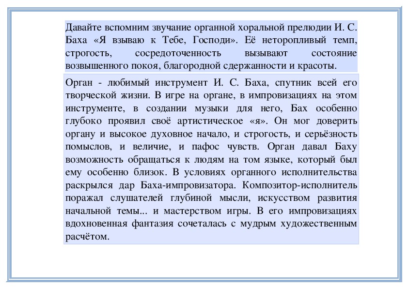1. И. С. Бах. Органная хоральная прелюдия «Я взываю к Тебе,