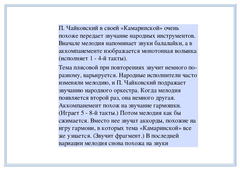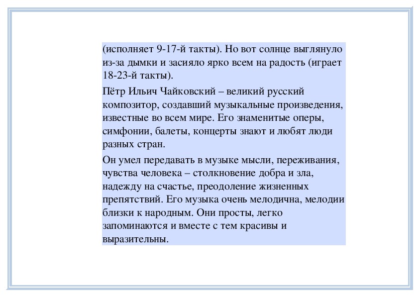 прозвучать фрагменты пьес П. Чайковского «Песня