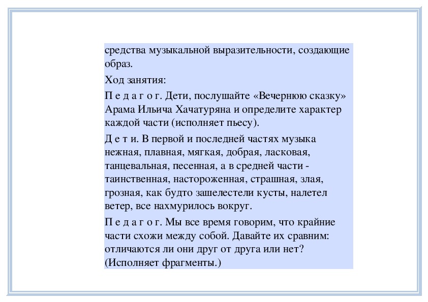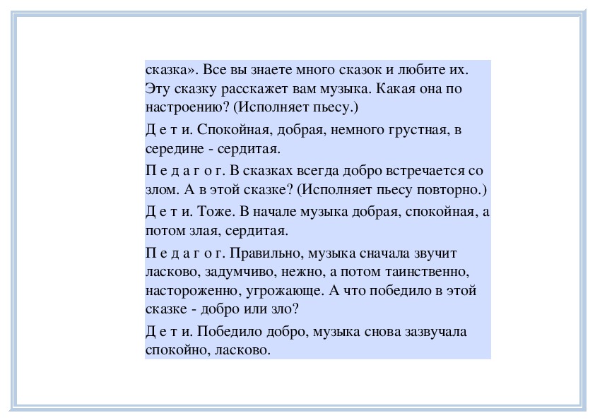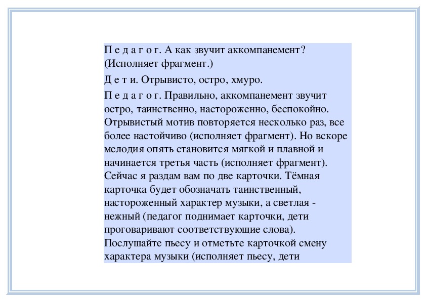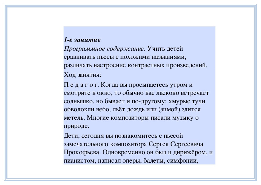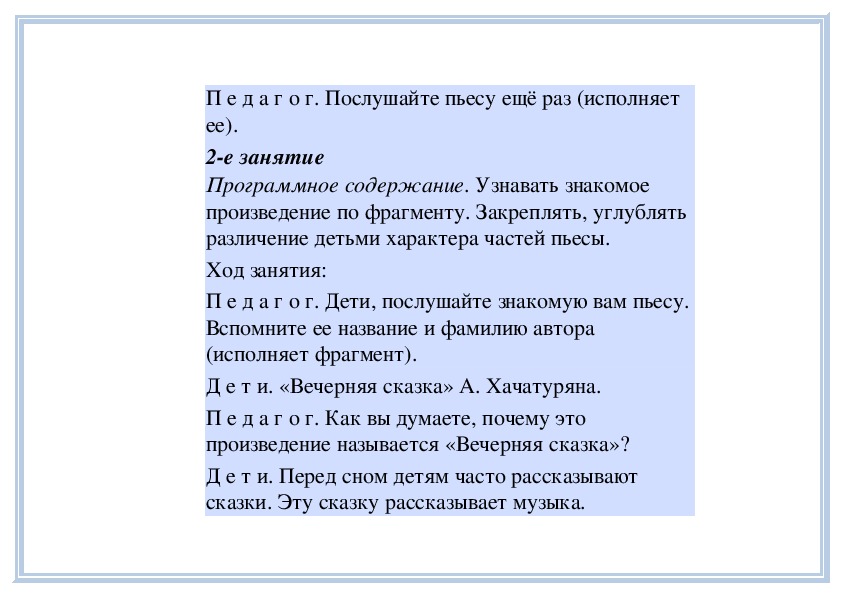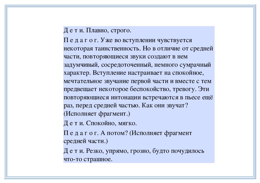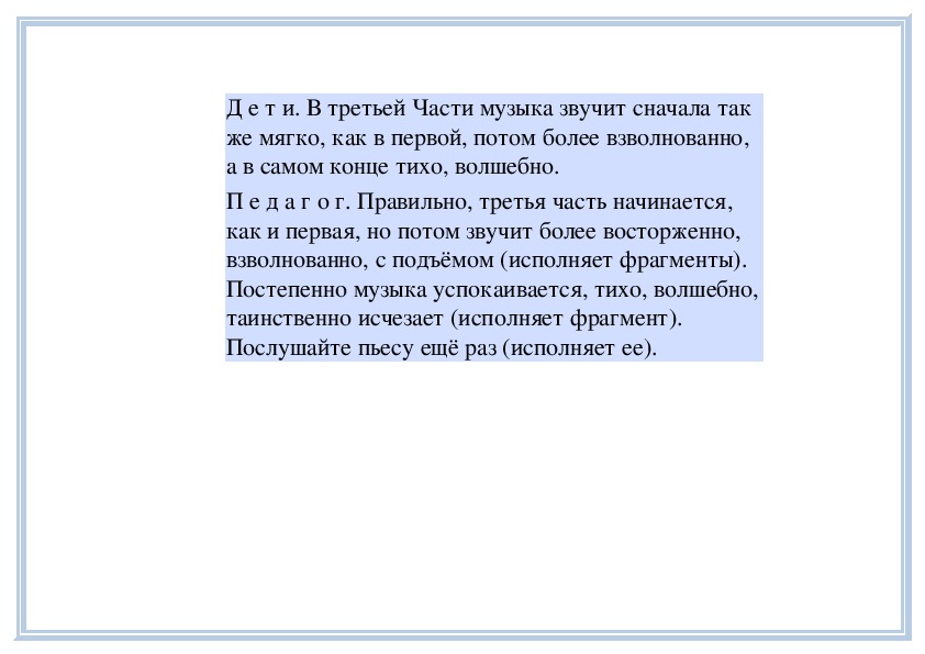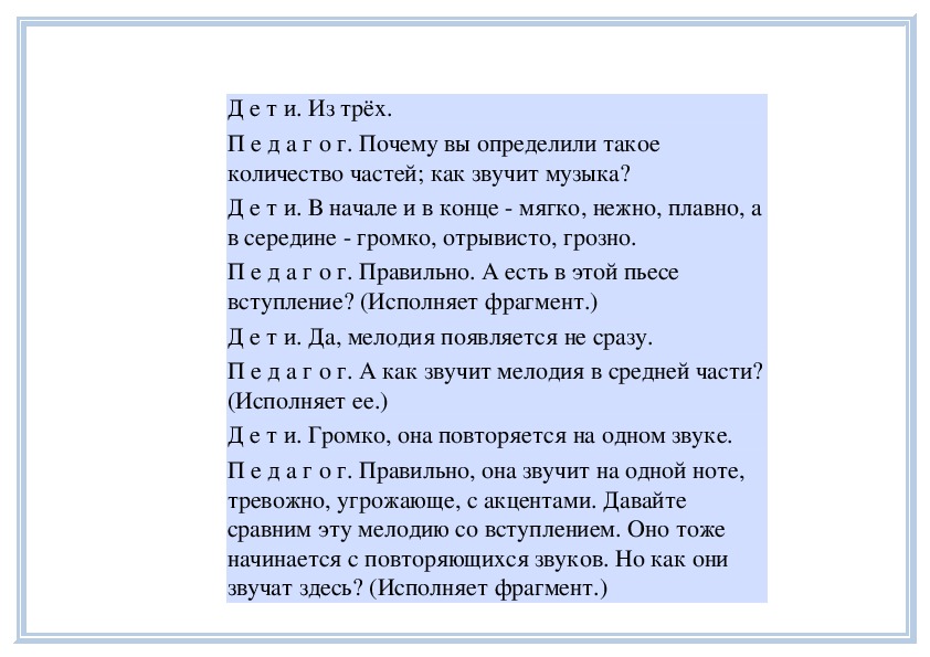П е д а г о г. Вы слушали на прошлом занятии пьесу