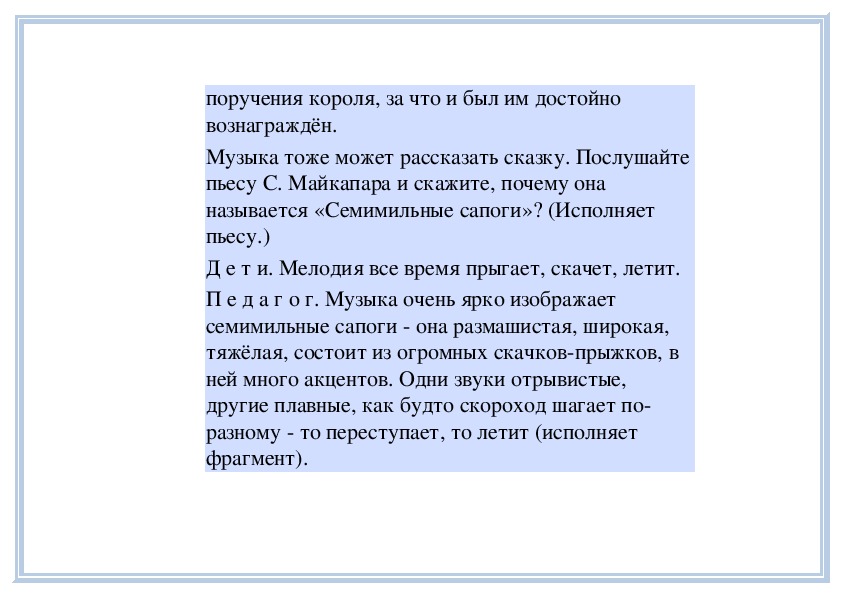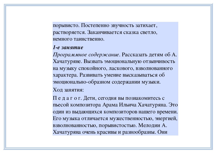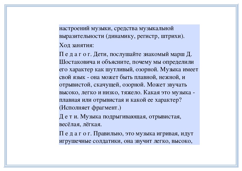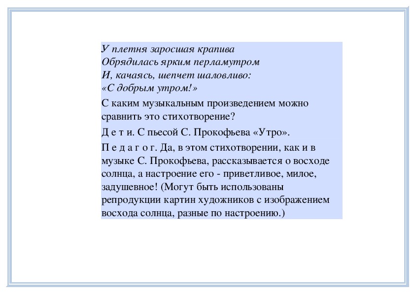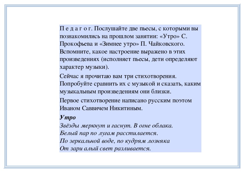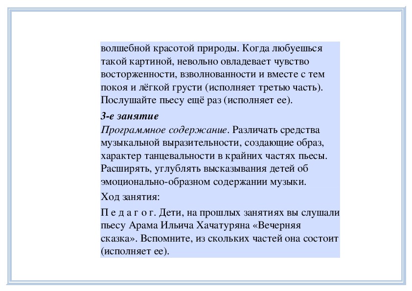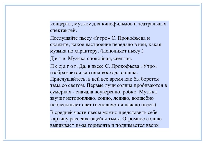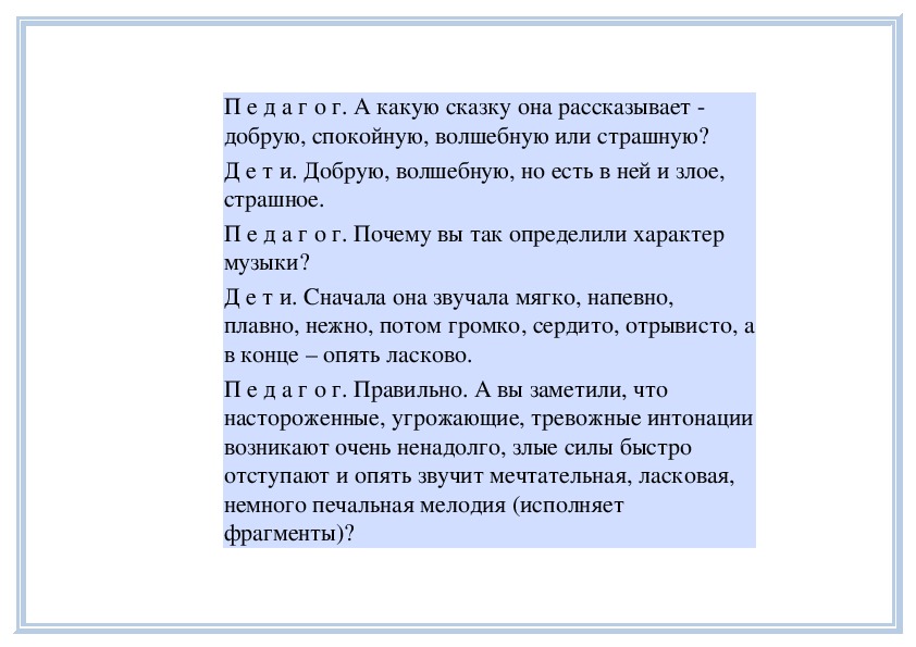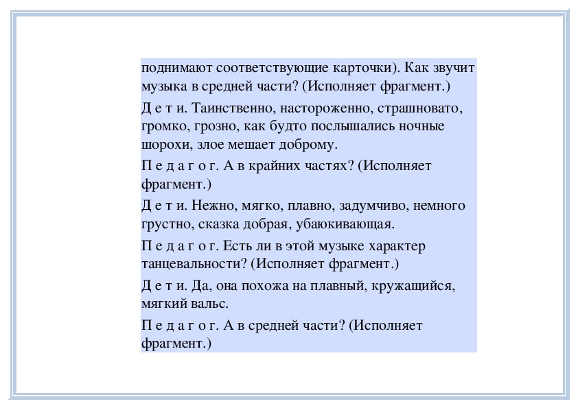 П е д а г о г. Вы слушали на прошлом занятии пьесу