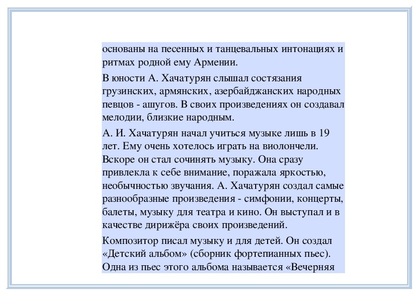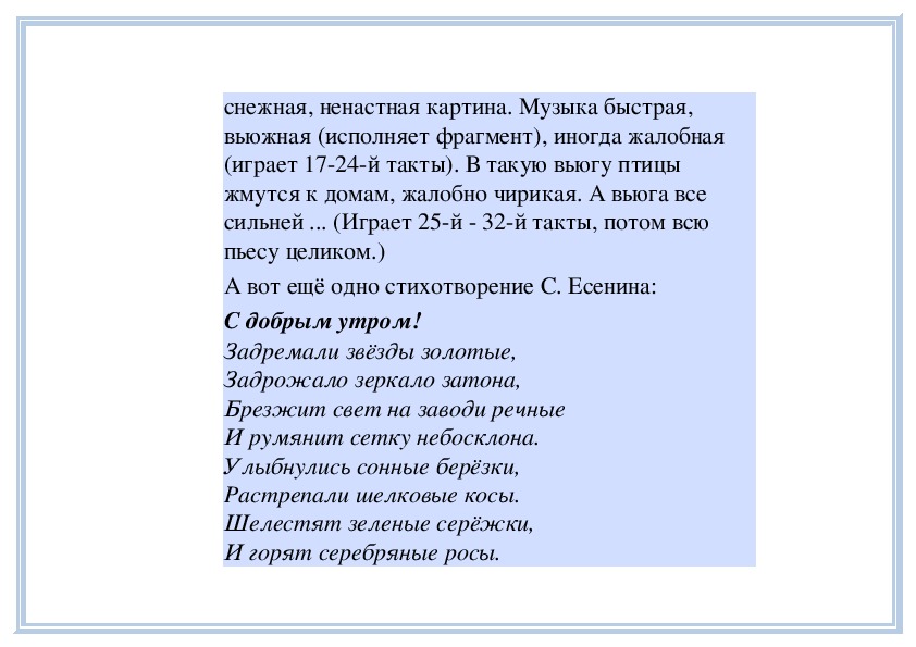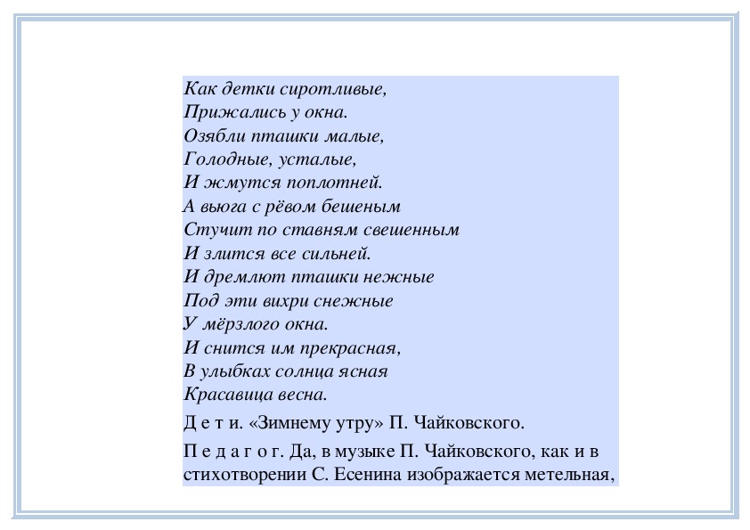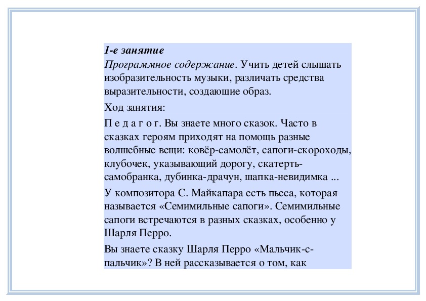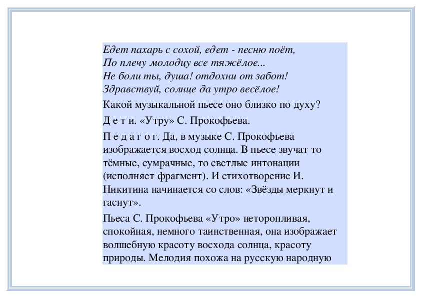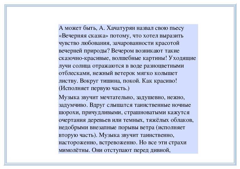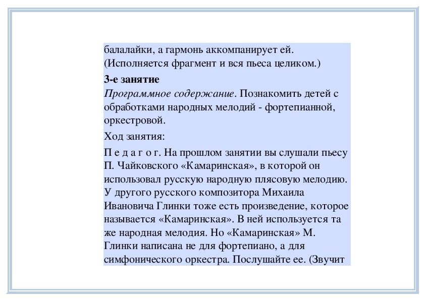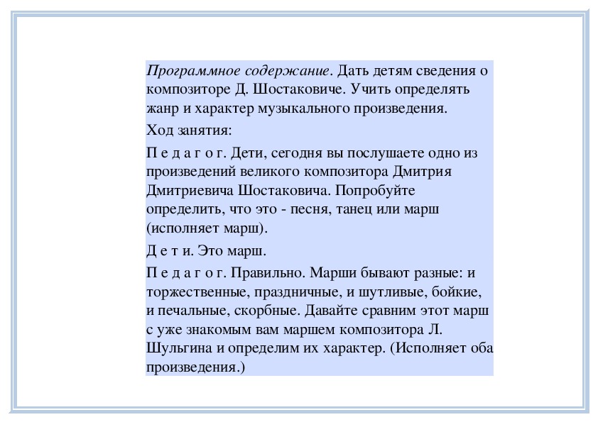П е д а г о г. Вы слушали на прошлом занятии пьесу