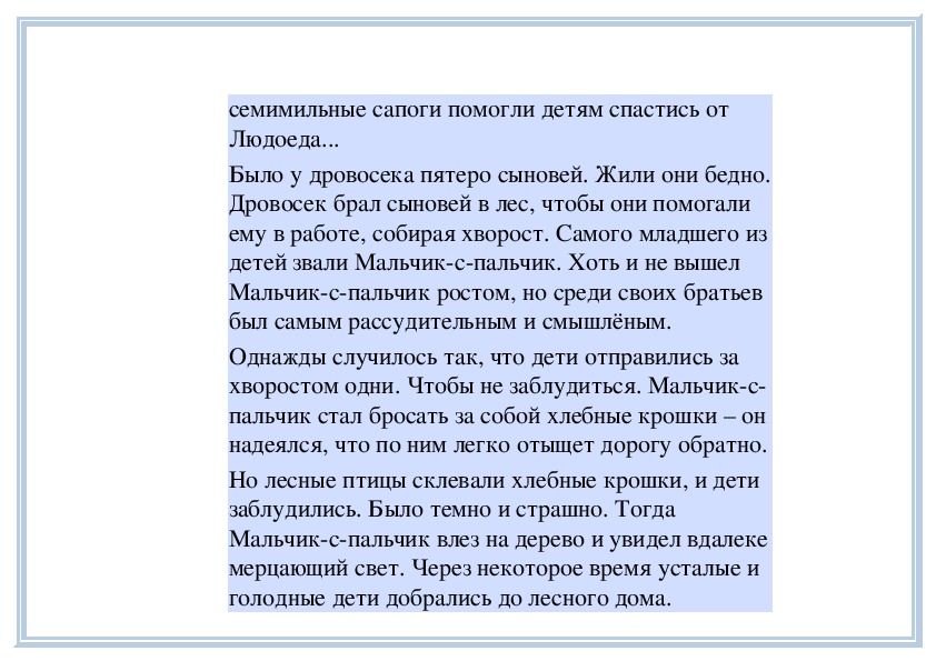 рассказывает им грустную сказку? (Могут
