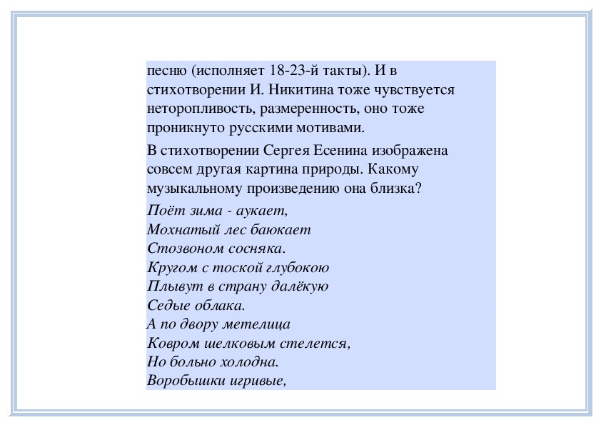 П е д а г о г. Да, песня неторопливая, немного