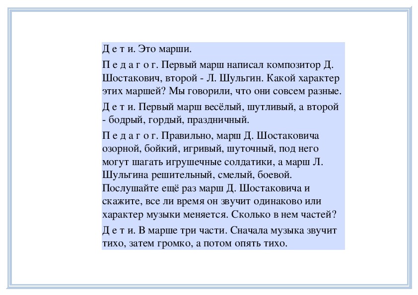 П е д а г о г. Да, в музыке мы легко узнаем и