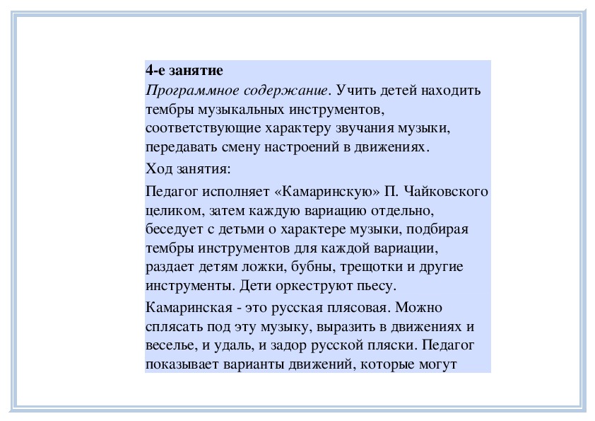 детей. Можно провести занятие в форме концерта