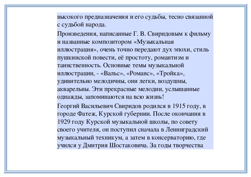 отдельных выдающихся композиторов (Г. Свиридова).