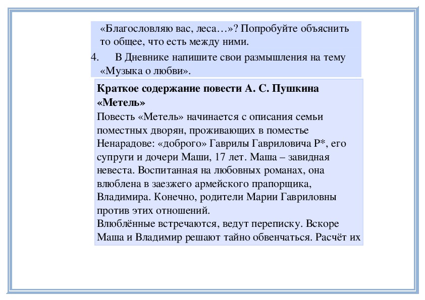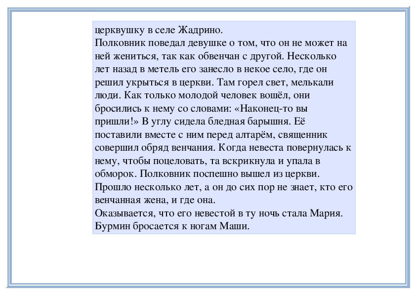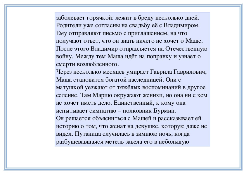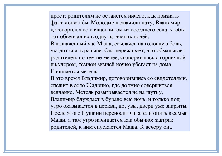 Вспомните повесть А. Пушкина «Метель», в которой