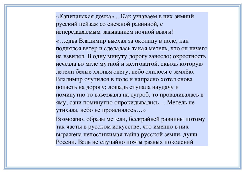 «Зимняя дорога» и «Бесы», повести «Метель» и«Капитанская дочка»... Как узнаваем в них зимний