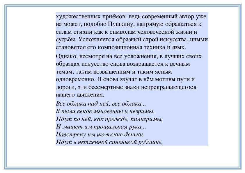 России. Ведь не случайно поэты разных поколенийснова и снова обращались к этим образам, к их древней