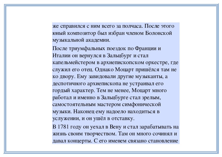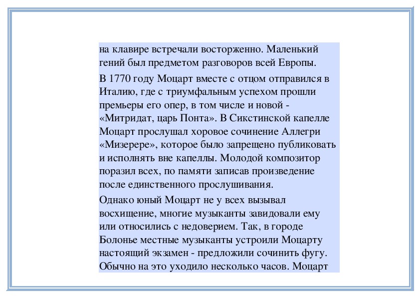 Обычно на это уходило несколько часов. Моцартже справился с ним всего за полчаса. После этого