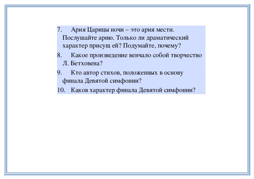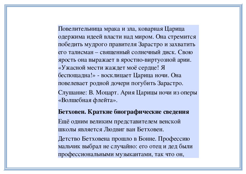 Слушание: В. Моцарт. Ария Царицы ночи из оперы