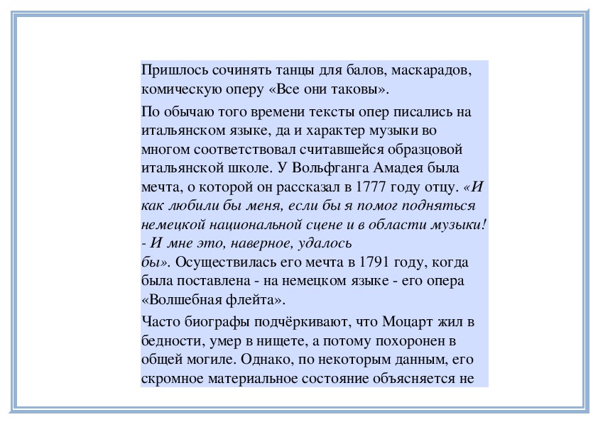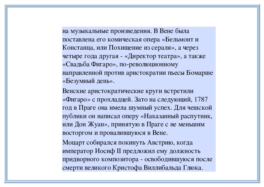 смерти великого Кристофа Виллибальда Глюка.Пришлось сочинять танцы для балов, маскарадов,