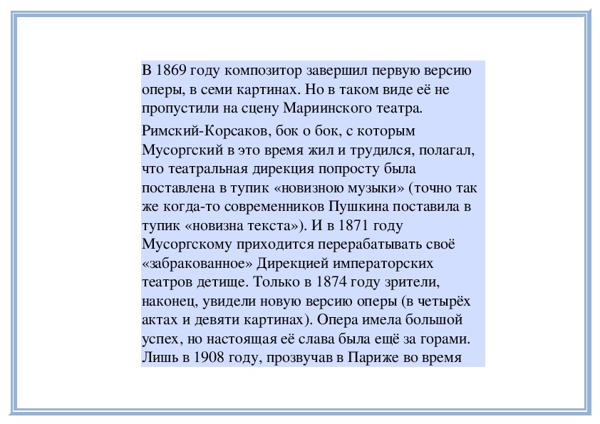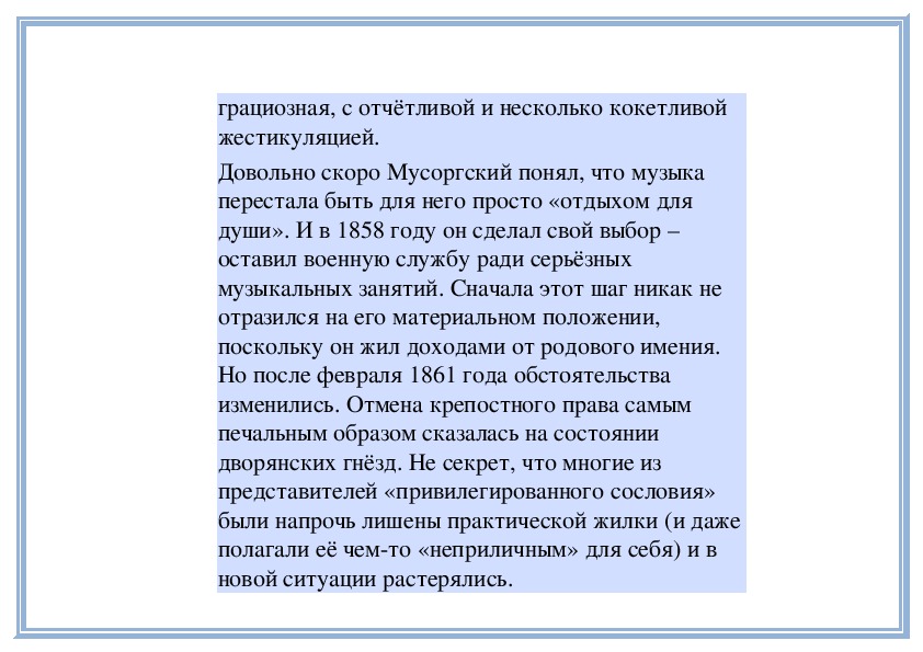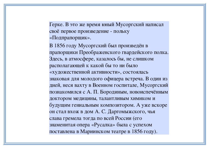 игры на фортепиано у известного пианиста А. А.Герке. В это же время юный Мусоргский написал