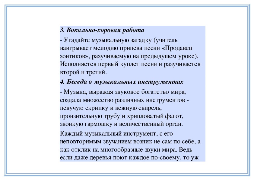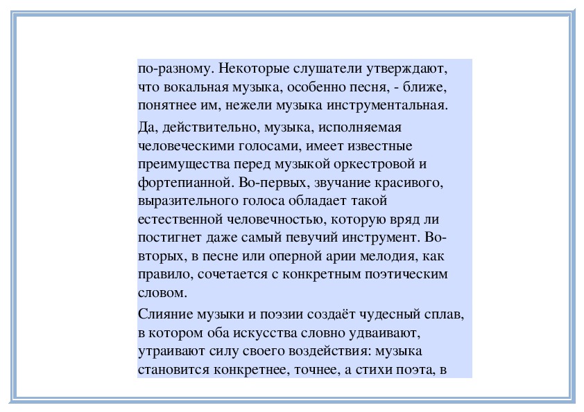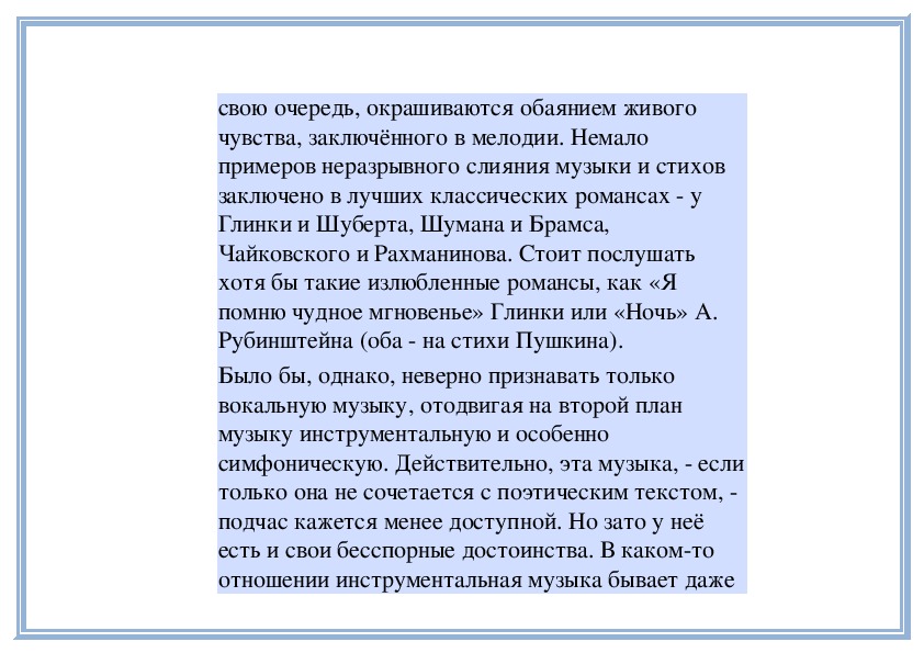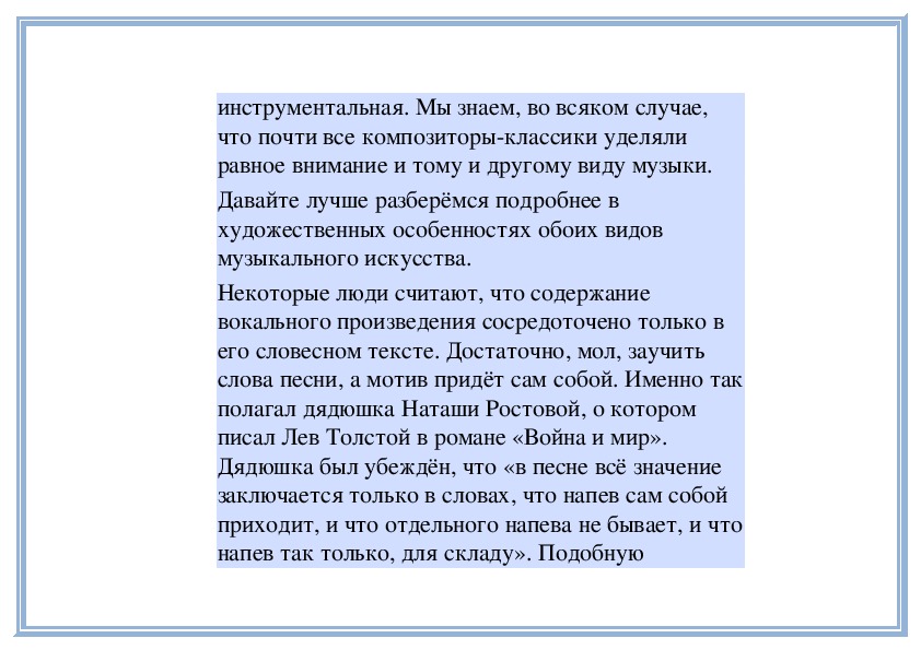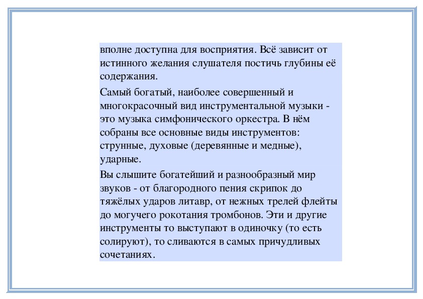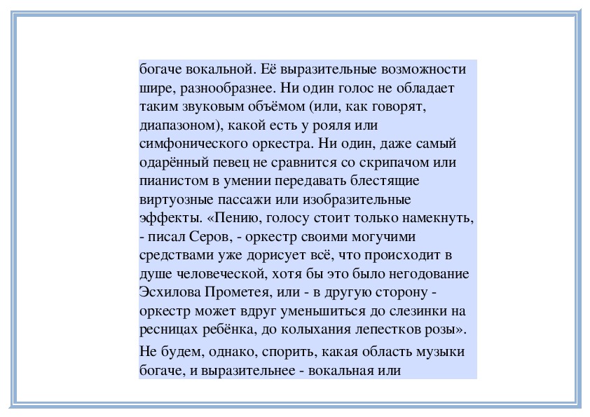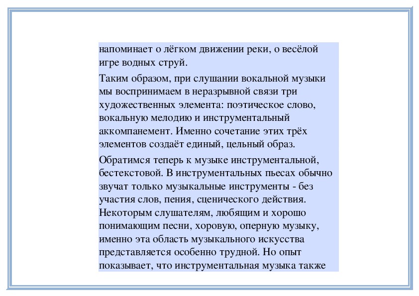 отношении инструментальная музыка бывает дажебогаче вокальной. Её выразительные возможности