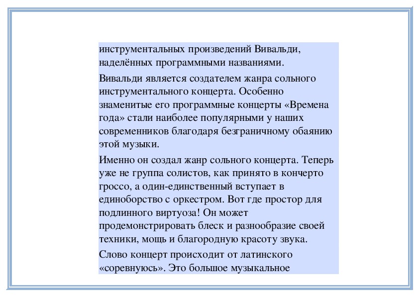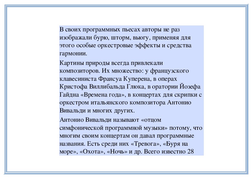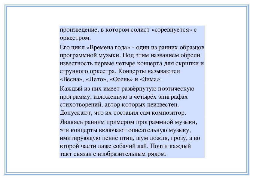 2. Программность обобщающего характера (на примере концерта «Зима» из цикла «Четыре концерта для скрипки с оркестром «Времена года» А. Вивальди).