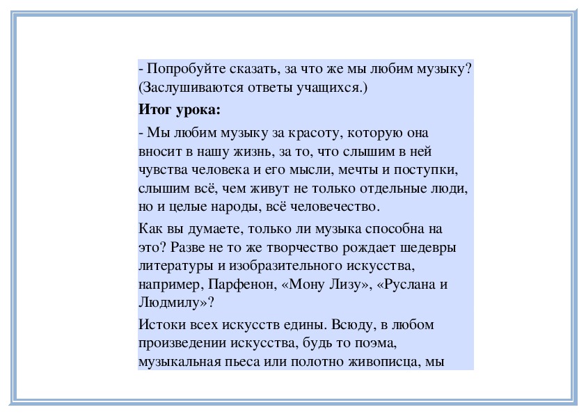 2. Воспринимать и оценивать музыкальные произведения с точки зрения единства содержания и средств выражения.
