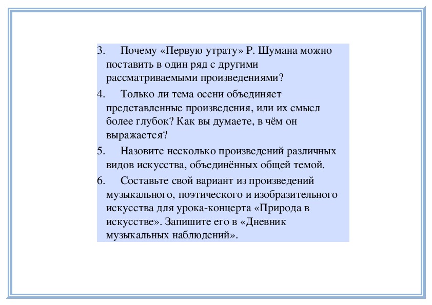 3. Находить ассоциативные связи между образами музыки, поэзии и изобразительного искусства.