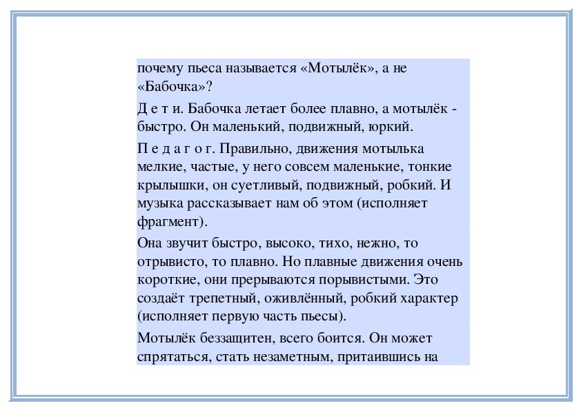 ним пьесу). Попробуйте дома нарисовать мотылька