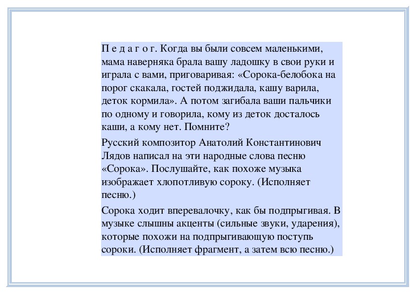 П е д а г о г. Послушайте две пьесы, с которыми вы