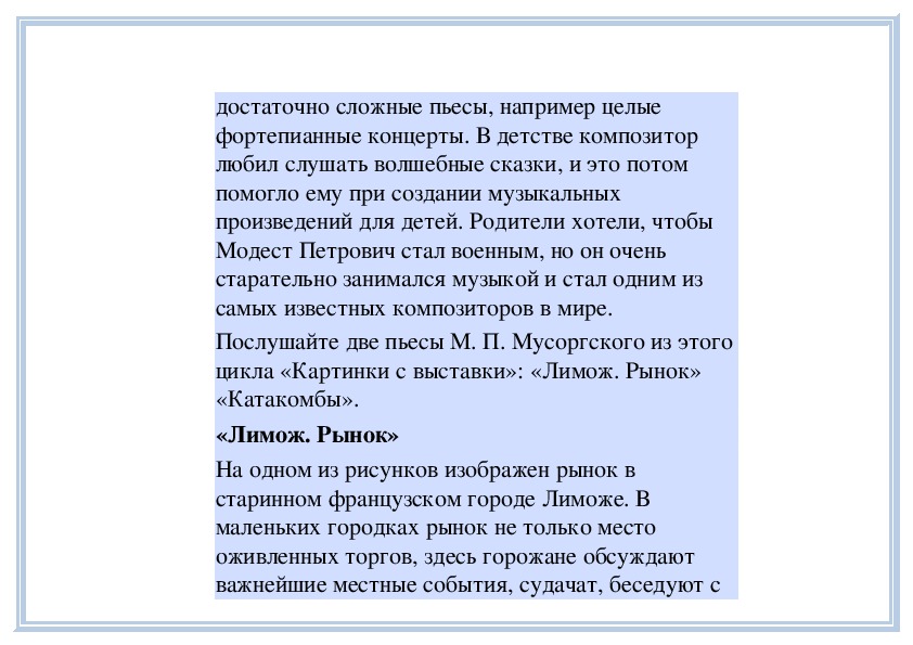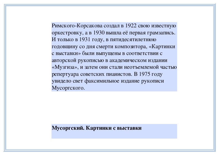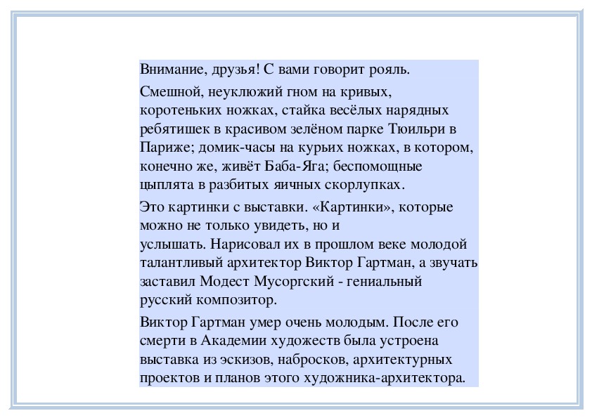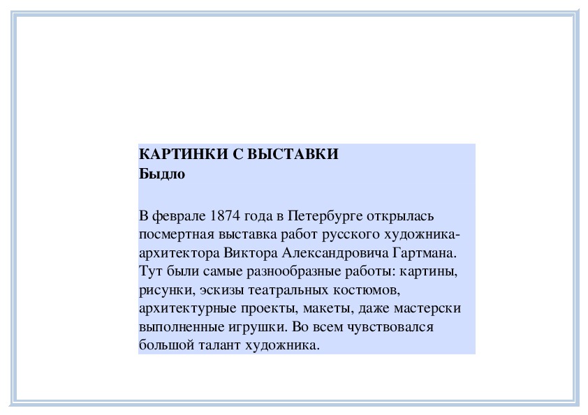 Мусоргского.КАРТИНКИ С ВЫСТАВКИ