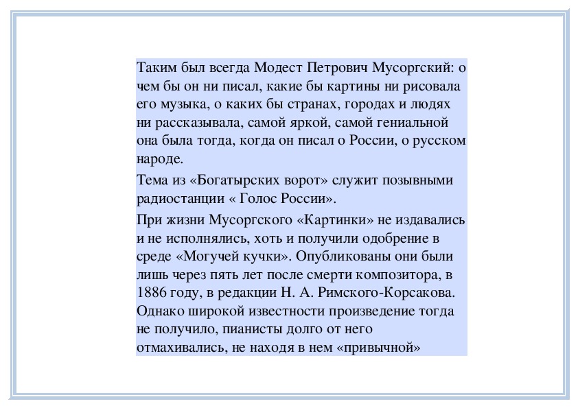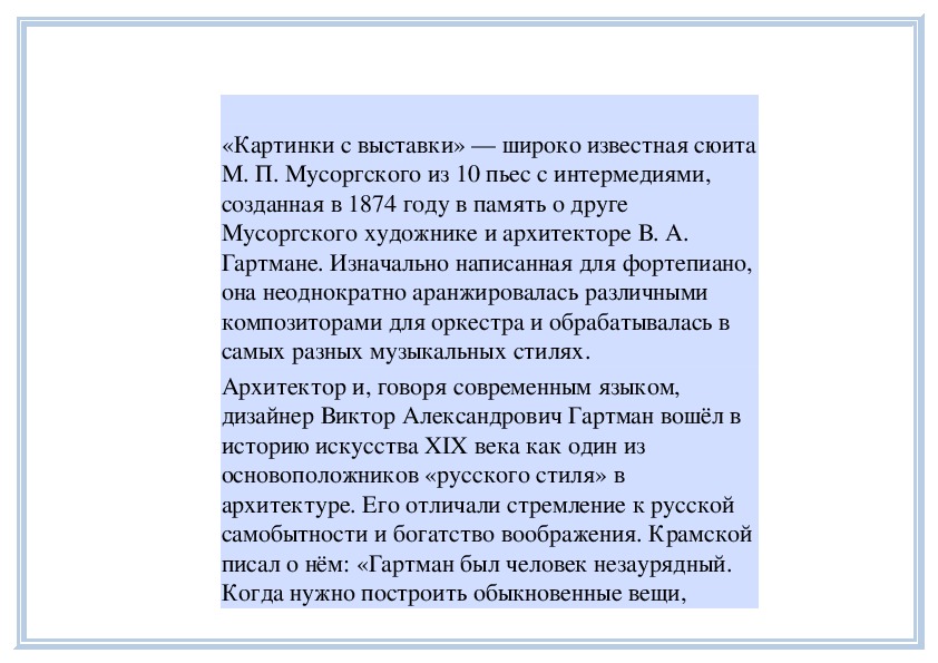 Мусоргского.КАРТИНКИ С ВЫСТАВКИ