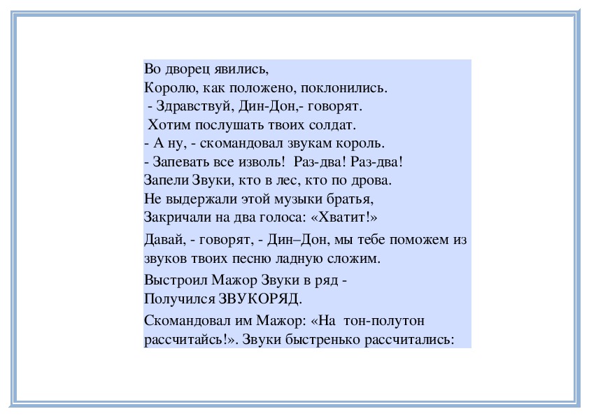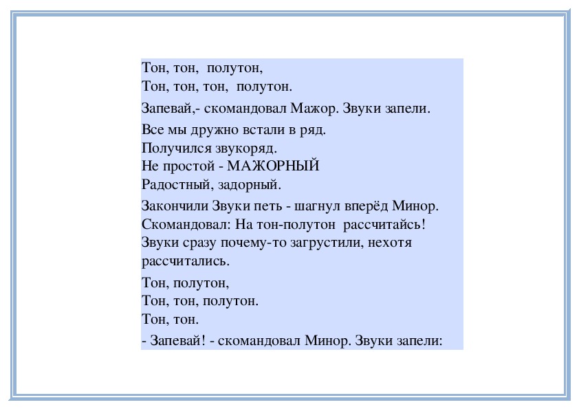 рассчитайсь!». Звуки быстренько рассчитались:Тон, тон, полутон,