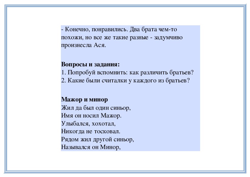 Весёлого звали Мажор, а грустного Минор.
