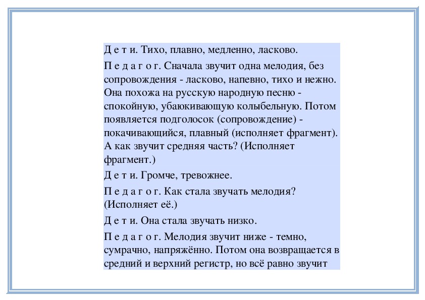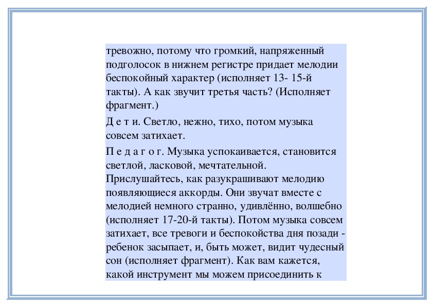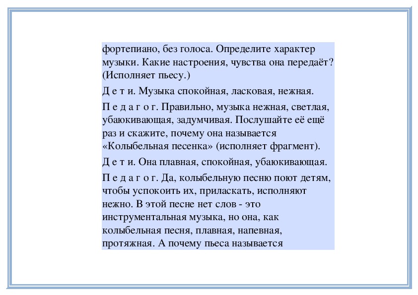 П е д а г о г. Да, музыка нежная, просящая,