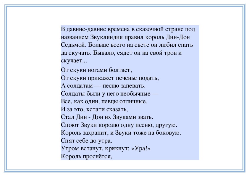 королю Звукляндии помогли и тебе помогут...В давниедавние времена в сказочной стране под