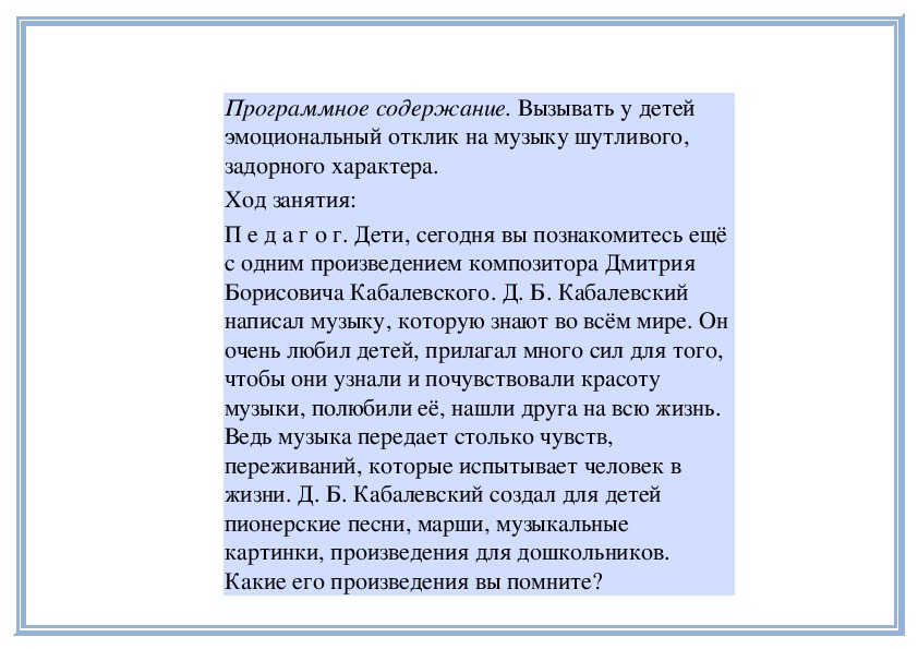 П е д а г о г. На прошлом занятии вы слушали три